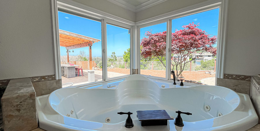 This light & bright, beautifully updated Bay-O-Vista home offers a spacious open layout and elegant living indoors and outdoors. The primary en suite is 400+ sq ft & includes a jacuzzi tub with a view & oversized walk in closet. Secondary bedrooms are spacious and private. Large flex room offers many options, panoramic views of the San Francisco Bay, bridges & city skyline! Outdoor private oasis includes: new kitchen with quartz countertops, bar seating for 4, double propane grill w/ side burner, mini-fridge, pergola, sun sail shade, & large level patio with custom pavers. New paint inside & out, new stainless steel appliances, gas oven/range, large center island, large level driveway, double pane windows, copper water pipes, R-38 ceiling insulation, tankless water heater, 7" seamless aluminum gutters, coffered ceilings & ceiling fans in all Living Spaces, deep base board & crown molding, solid core doors, 8' mirrored wardrobe doors all Bedrooms & more! Excellent freeway access to all major Bay Area cities. Minutes to Oakland International Airport, BART, Michelin Bib Gourmand award winning restaurants, Bay-O-Vista Swim and Tennis Club, Lake Chabot Regional Park, & schools.